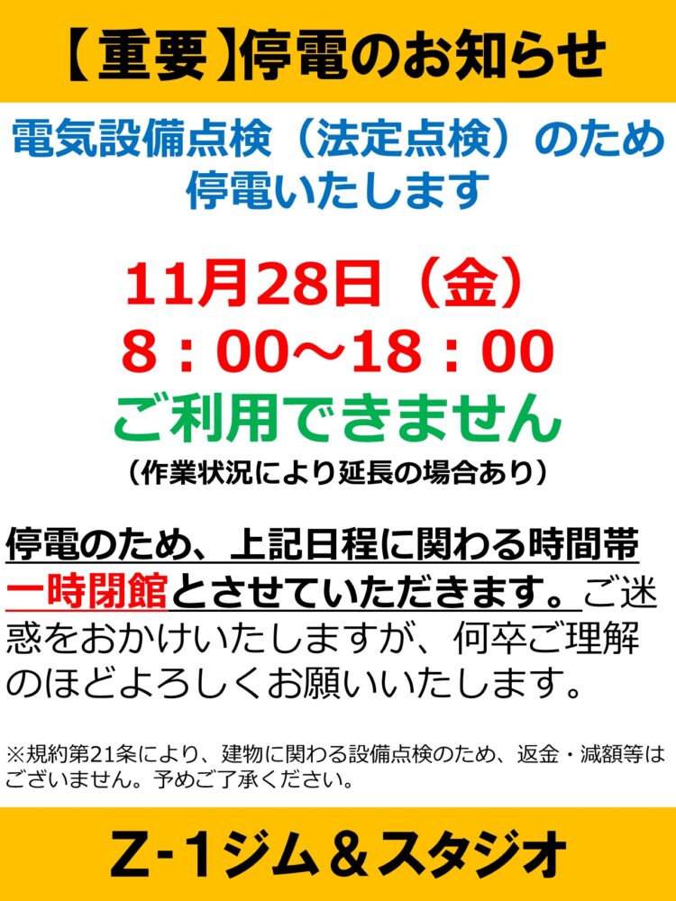 HOME > 新着情報 > 停電のお知らせ11/28(金)
